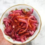Try this quick sweet pickled red onions recipe and share your favorite way to enjoy them! Comment, rate, or tag me on social media (@thebiblediet on Instagram) I’d love to see your colorful creations.